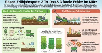 🌱 Das Wichtigste in Kürze: Rasenpflege nach dem WinterInhalte1 🌱 Das Wichtigste in Kürze: Rasenpflege nach dem Winter2 Warum der März so entscheidend ist3 ✅ To-Do #1: Vertikutieren – der Befreiungsschlag für Ihren Rasen4 ✅ To-Do #2: Kalken & Düngen – Reihenfolge entscheidet alles5 ✅ To-Do #3: Kahle Stellen nachsäen – so gelingt es wirklich6 […]